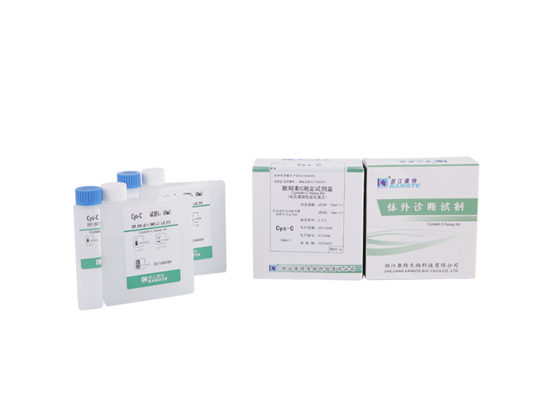 De standaard voor menselijk cystatine C is 15 ng natief menselijk cystatine C in een gebufferde eiwitbasis. Het kan een maand bij -20 o C worden bewaard en mag niet worden onderworpen aan vries-dooicycli. Voor de bijbehorende testkit is 30 ml van de 10x assaybuffer nodig. Deze buffer wordt gebruikt om het ongebonden antilichaam te verwijderen. De Human Cystatin C Assay Kit is verkrijgbaar in meerdere formaten.