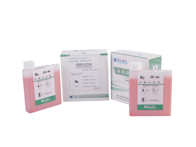 Een magnesiumtestkit is ontworpen om de magnesiumconcentratie rechtstreeks in biologische monsters te meten, zonder dat enige voorbehandeling nodig is. De kit bevat een kleurstof genaamd Calmagite die een gekleurd complex vormt met magnesium. De intensiteit van de kleur verandert evenredig met de hoeveelheid magnesium in het monster. De kit maakt gebruik van een speciaal ontworpen formule om de interferentie van andere stoffen te minimaliseren. De Magnesium Assay Kit is verkrijgbaar bij verschillende leveranciers.
